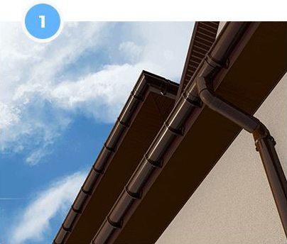 На закінчення системи защипуються заглушки. Відстань від заглушки до бокової дошки даху або до сусідньої стіни не менше 3 см.