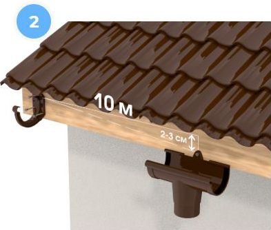 Кронштейни ринви монтуються безпосередньо до лобової дошки на відстані 60 см один від одного. Відстань від краю даху до першого кронштейну ринви має бути 10 см.
