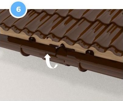 Кронштейни ринви встановлюються з розрахунку - 6 штук на 1 ринву, але не більше ніж через 55 см, і не далі 10 см від лійок, муфт і кутів ринв.