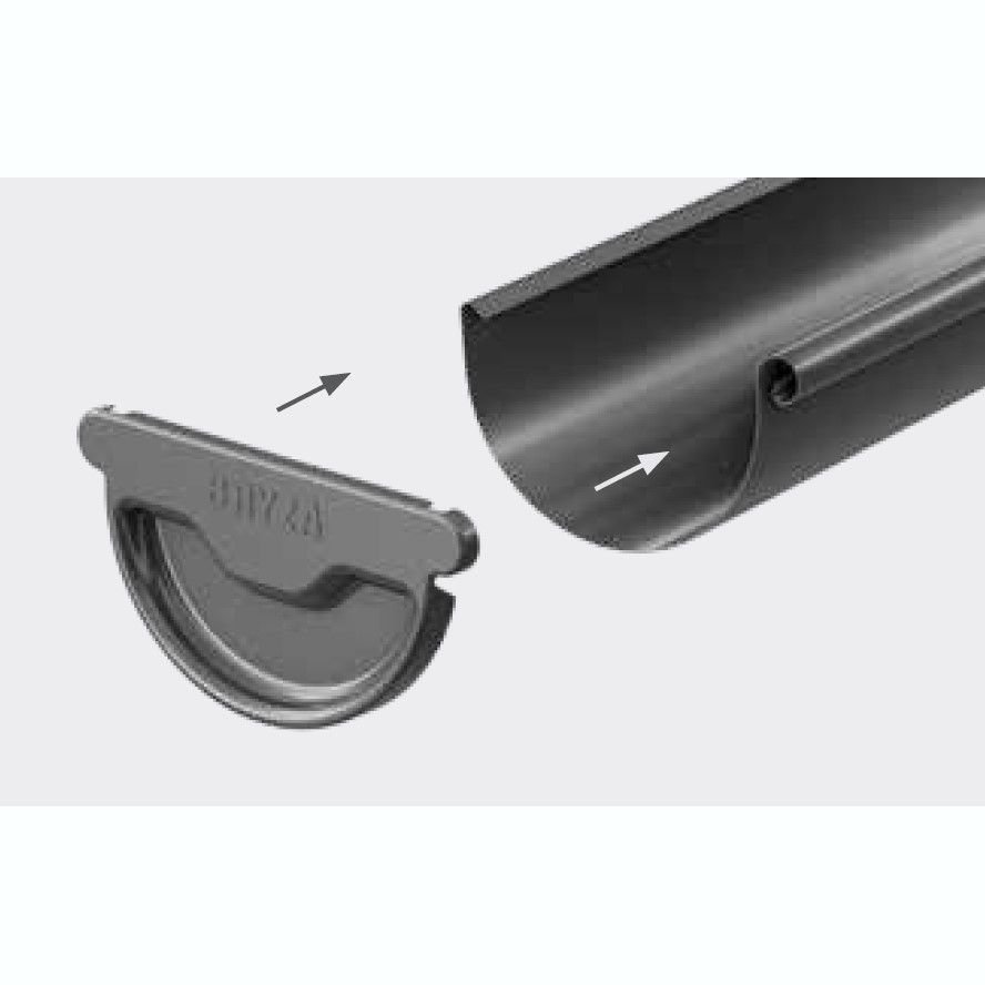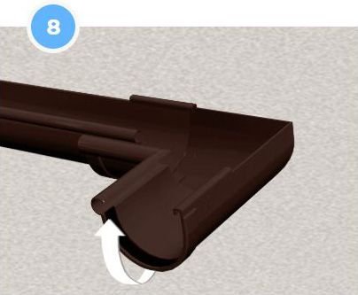 Конструкція дозволяє встановити заглушку на будь-якому кінці ринви (правому або лівому), що робить її універсальним елементом. Встановлюємо заглушку, повністю втискаючи її у край ринви.