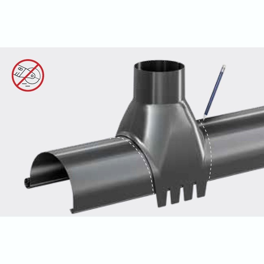 Трійники встановлюються аналогічно муфтам. У разі з'єднання труби 75 мм з трубою 100 мм через трійник використовується адаптер.
