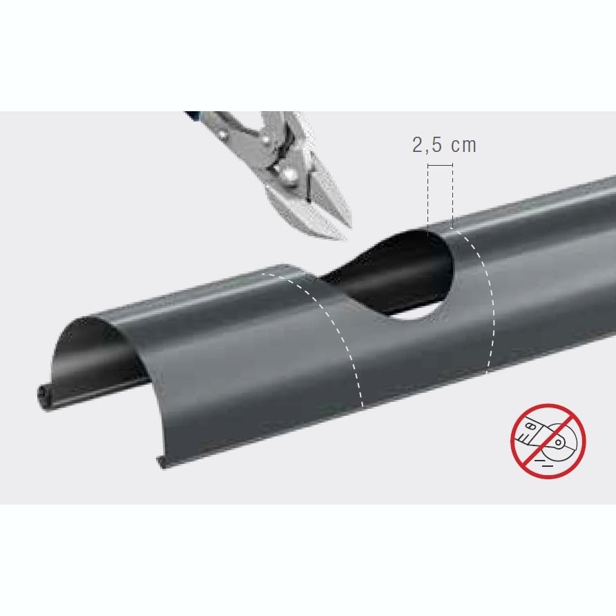 Використовувати відповідний безпечний для покриття ринви інструмент, наприклад м’який молоток. Краї розрізу вигнути назовні ринви.