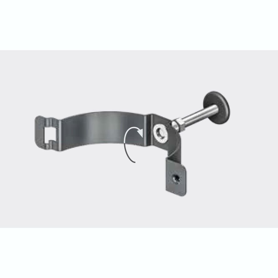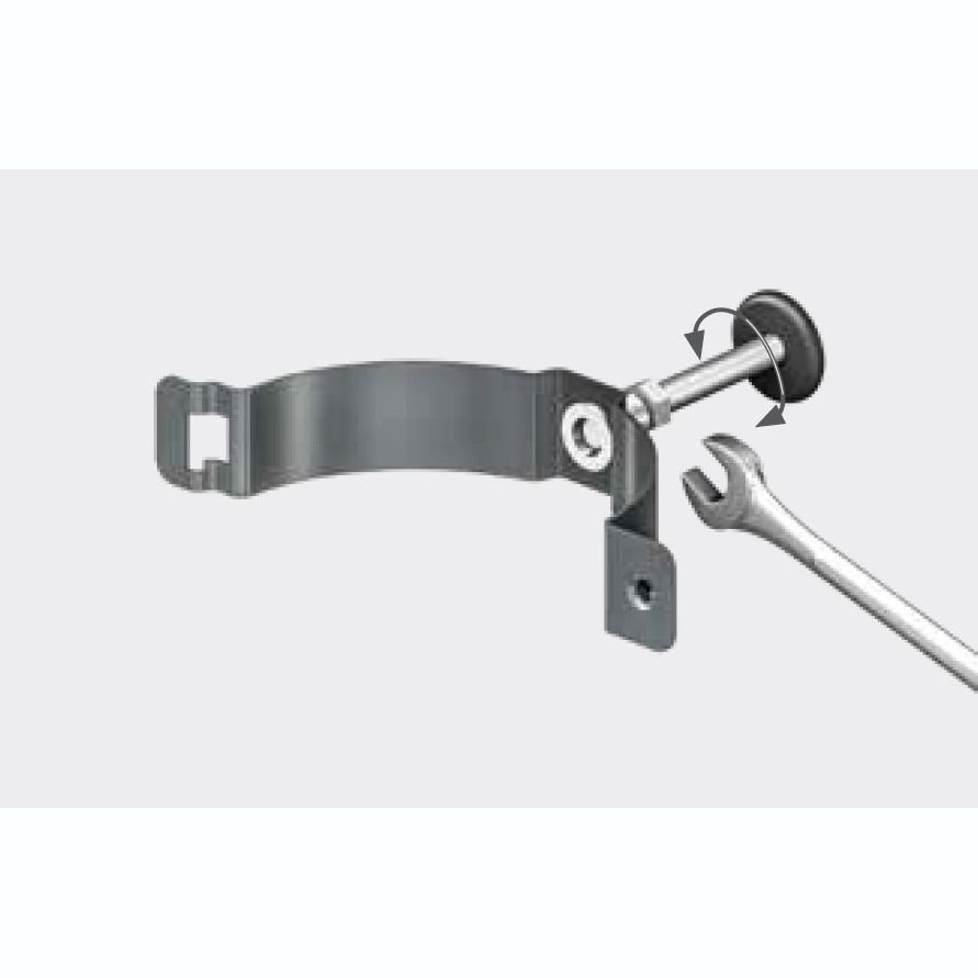 Завжди використовуйте гайковий ключ, щоб вкрутити або, якщо необхідно, відкрутити гак хомута щоб труба при установці в хомут була вертикальна.