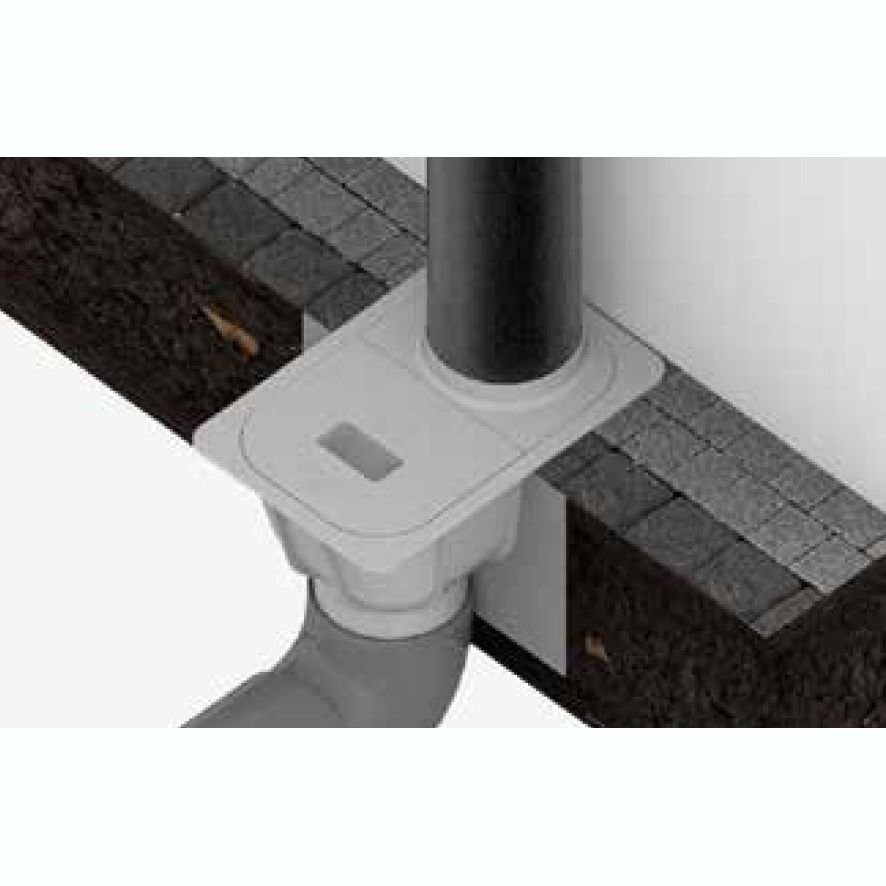 Злив монтуємо на відстані мінімум 5 см над землею та фіксуємо за допомогою хомута. Також можемо використовувати відстійник з водостічної системи BRYZA ПВХ.