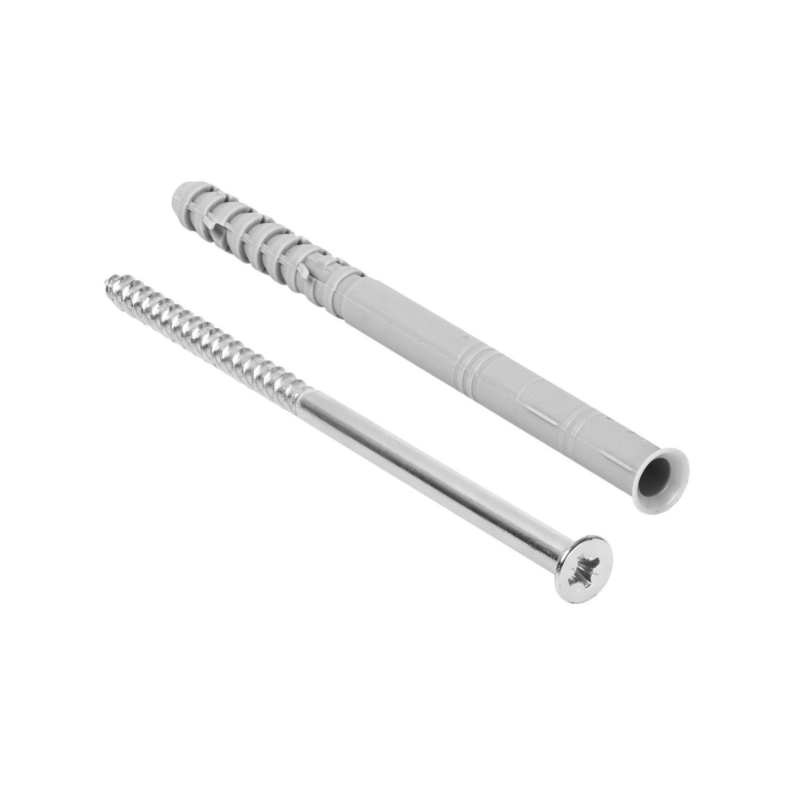 Гвинт-шуруп кріпильний GIZA з дюбелем довжиною 80 мм призначений для надійного монтажу кронштейнів ринви до фасаду будівлі. Виготовлений із міцного металу, він забезпечує високу стійкість до навантажень, корозії та атмосферних впливів. Комплект «шуруп + дюбель» гарантує міцну фіксацію у бетоні, цеглі та інших будівельних матеріалах.