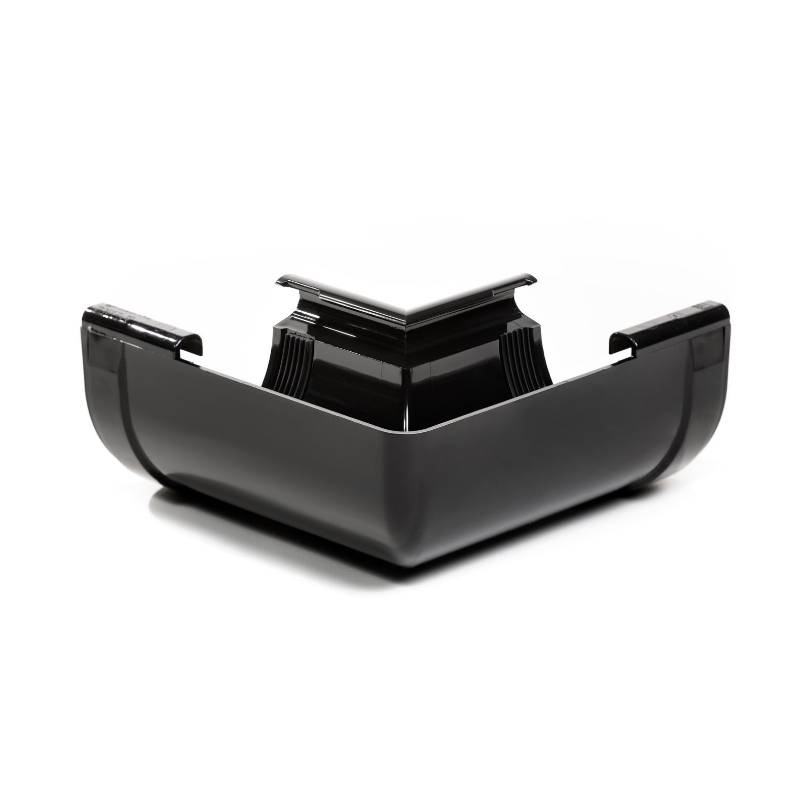 Кут має точну заводську геометрію, завдяки якій ринви з’єднуються щільно та герметично, без додаткових ущільнювачів. Конструкція передбачає надійні фіксатори, які забезпечують легкий монтаж та стабільність елемента під час роботи системи.