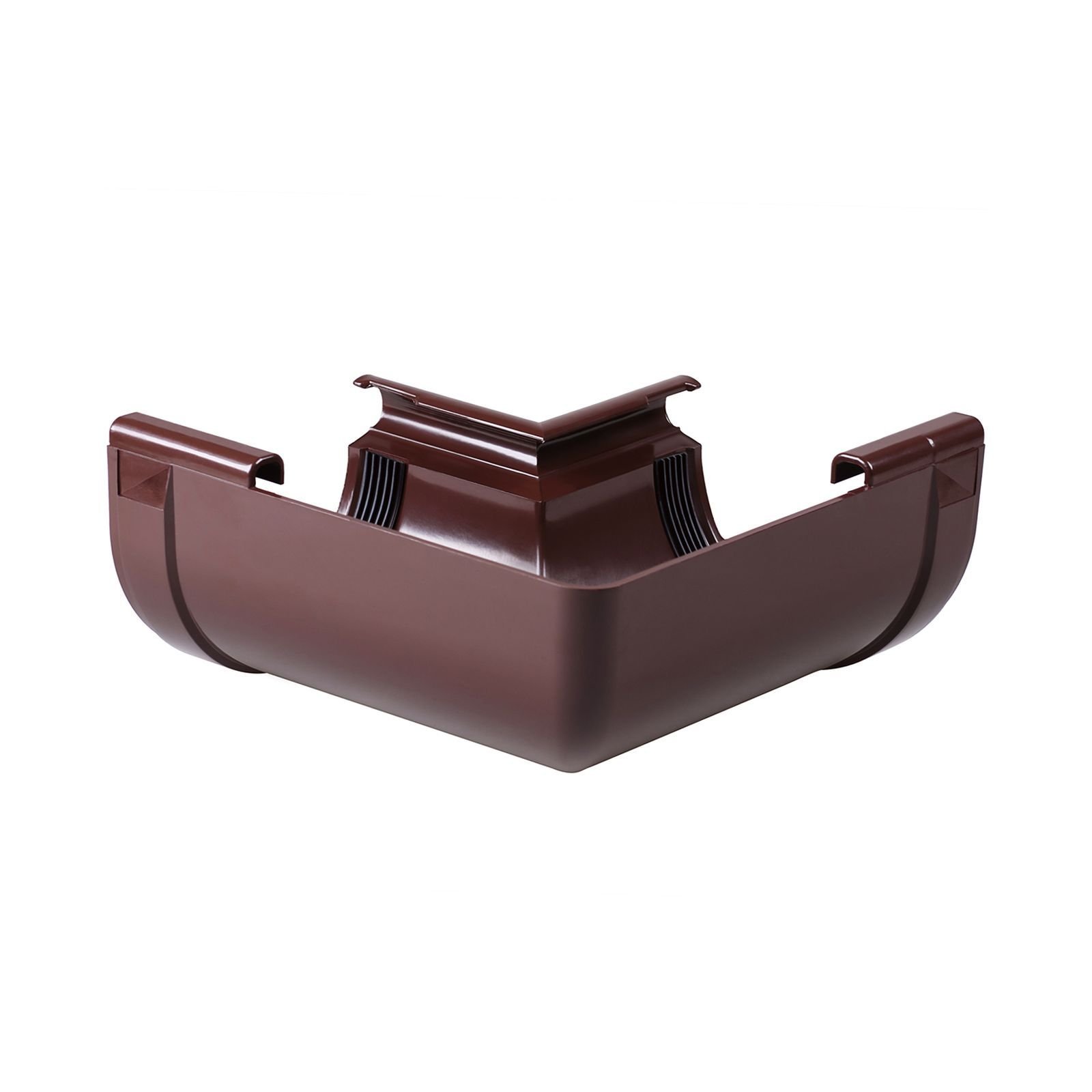 Кут має точну заводську геометрію, завдяки якій ринви з’єднуються щільно та герметично, без додаткових ущільнювачів. Конструкція передбачає надійні фіксатори, які забезпечують легкий монтаж та стабільність елемента під час роботи системи.