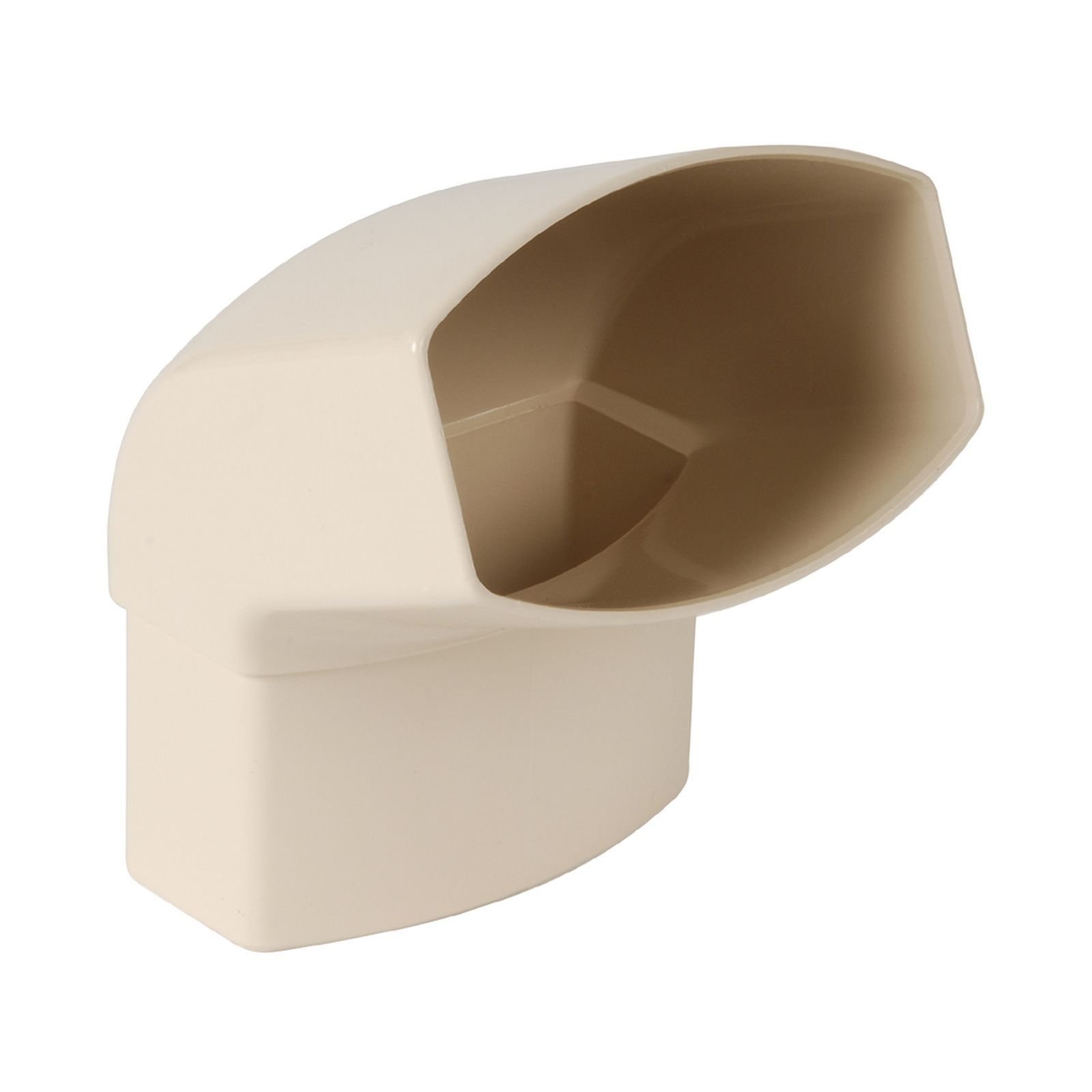 Відвід труби має універсальне з’єднання “папа-мама”, що усуває потребу у додаткових муфтах. Його форма сприяє збереженню чітких контурів водостічної системи.