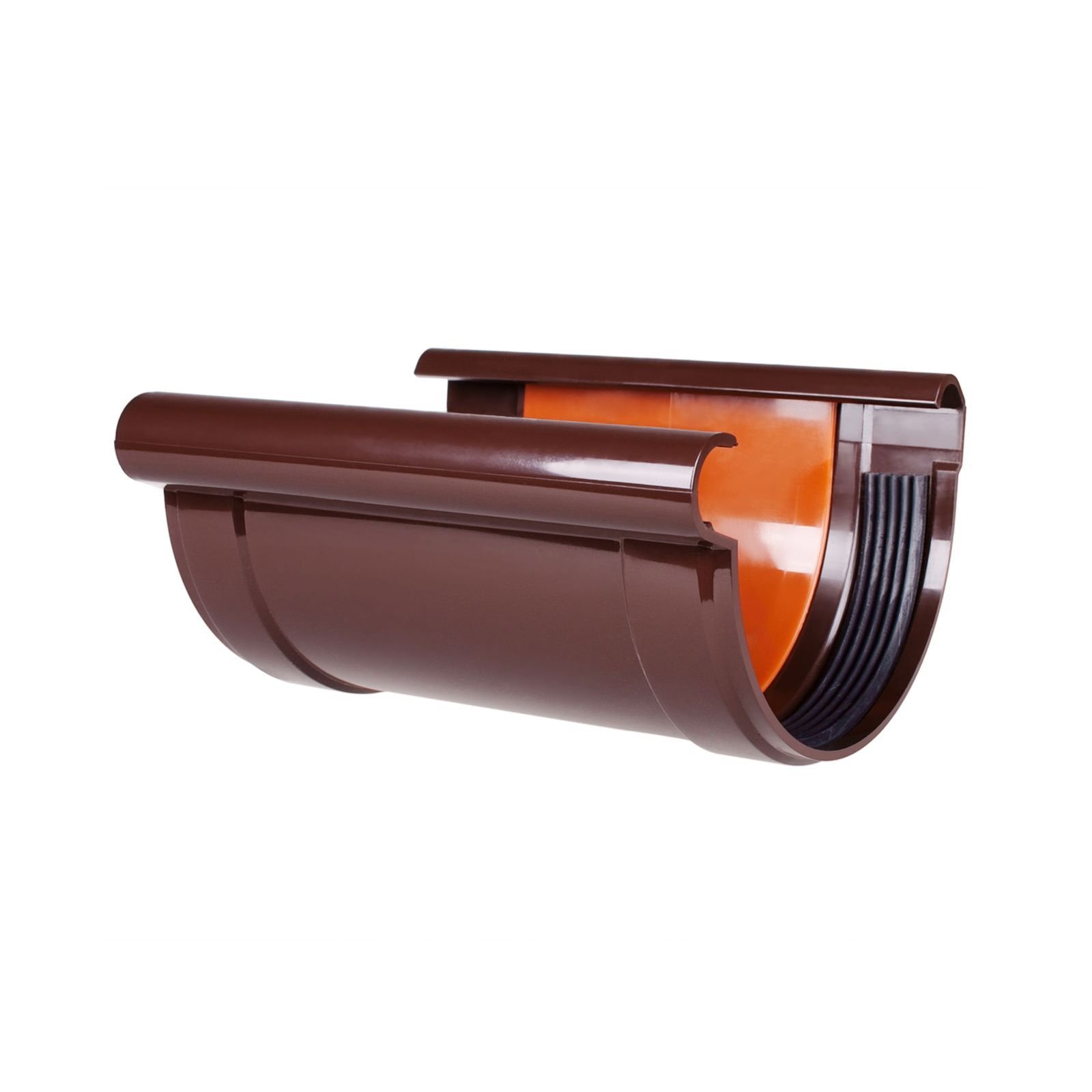 Елемент підходить для систем із діаметром 90 або 130 мм, точно повторює форму жолоба та надійно утримує обидві частини в єдиній лінії. Завдяки виготовленню з міцного ПВХ з’єднувач стійкий до УФ-випромінювання, корозії, перепадів температур і механічних навантажень.